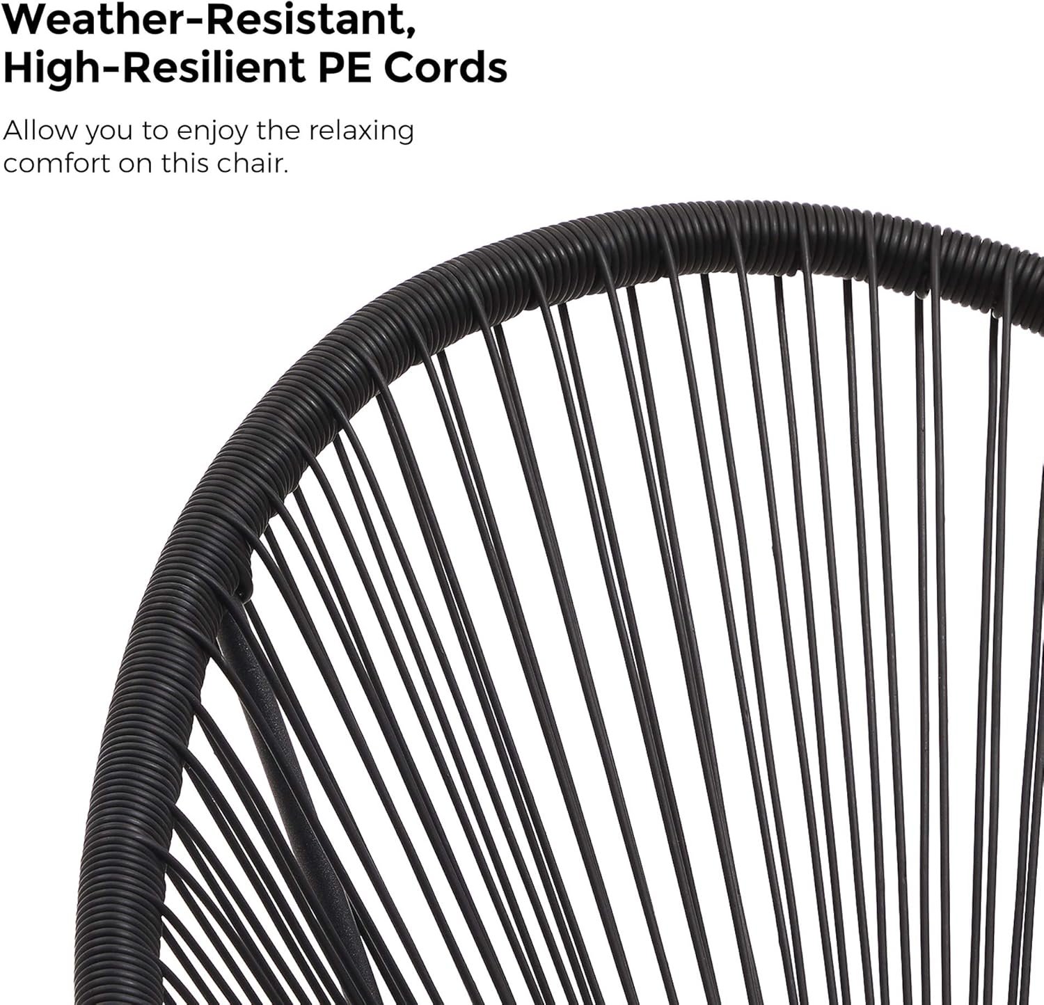 Durable & Weather-Resistant: Made from high-quality materials, the Acapulco chairs feature a durable woven design that can withstand outdoor weather conditions. The glass table is tempered for added strength and safety, perfect for dining, drinks, or enjoying coffee.